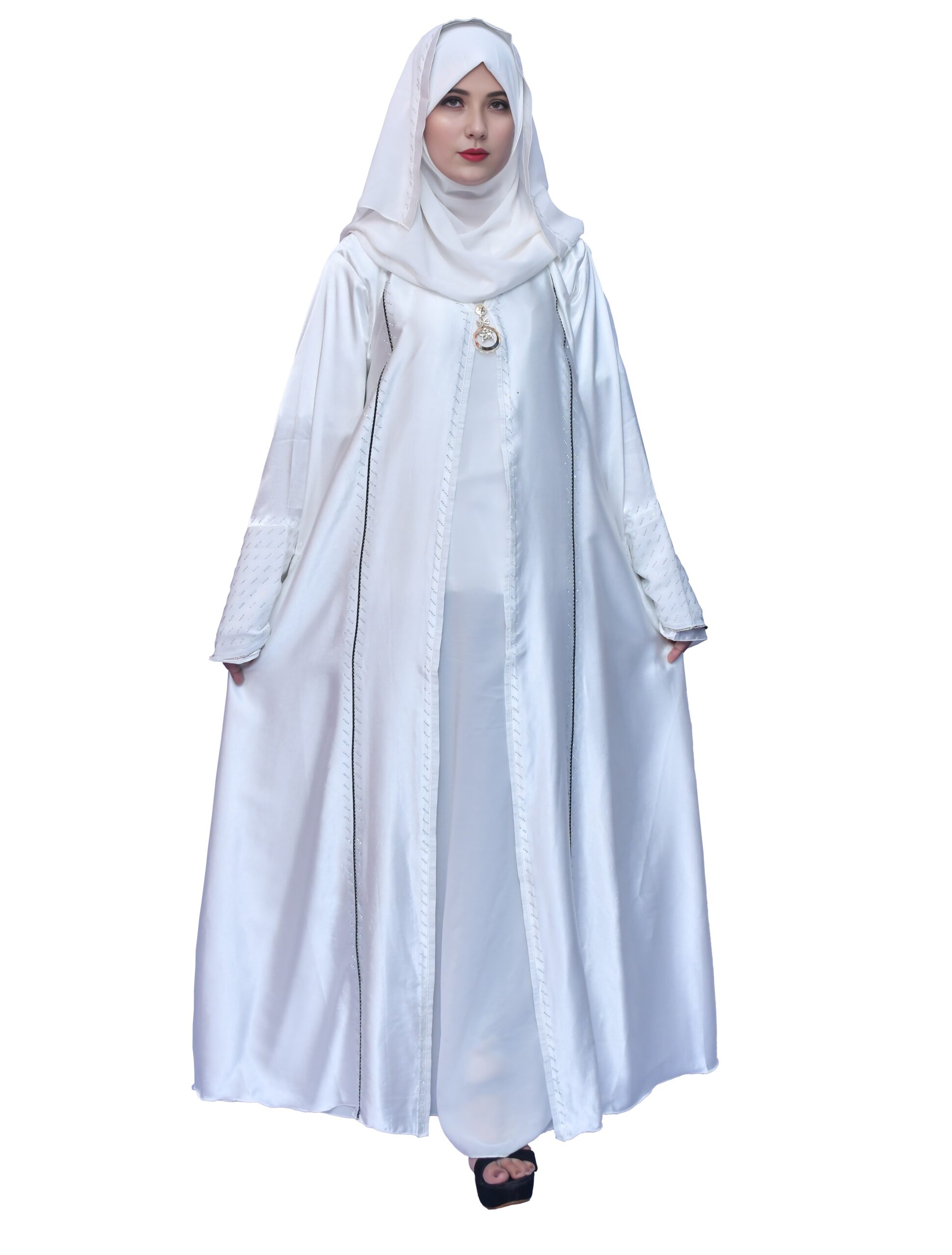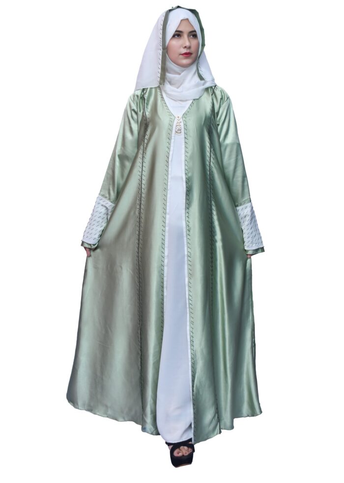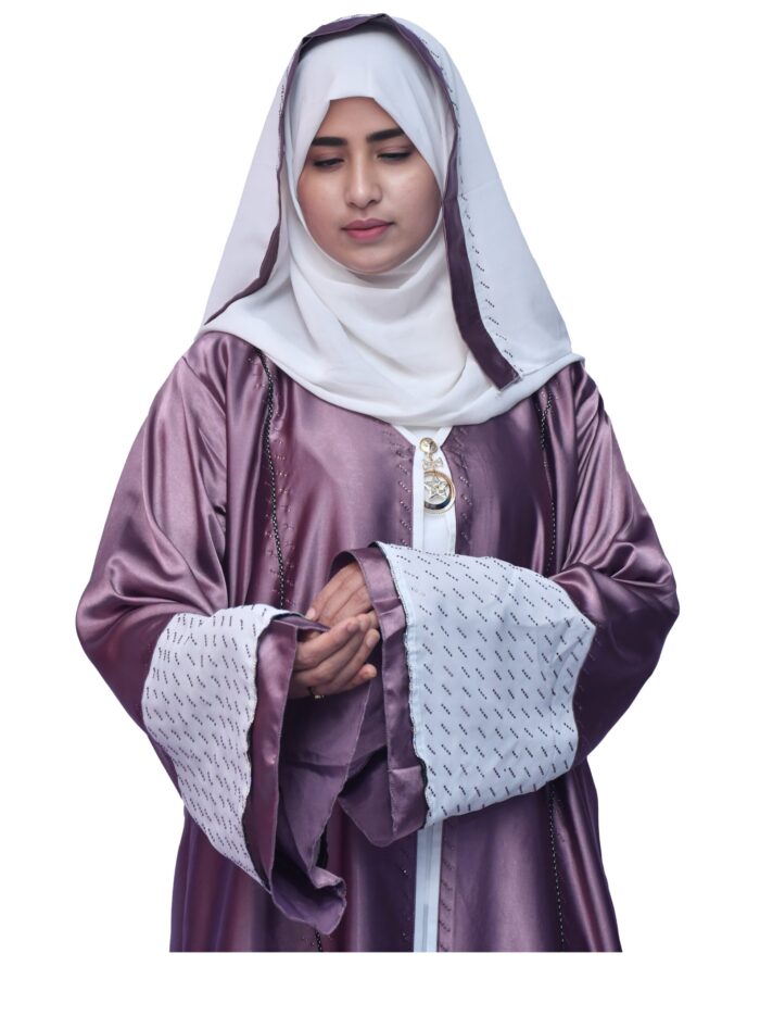This is a Jacket style abaya. The stone work on front and cuffs makes this piece very unique and attractive. This abaya dress is a perfect elegant article at the lowest price. Crafted from comfortable satin crush fabric, it is lightweight, soft and comfortable. It comes with a complementary Hijab that makes it more affordable. One of the best abayas anyone can have in their wardrobe.