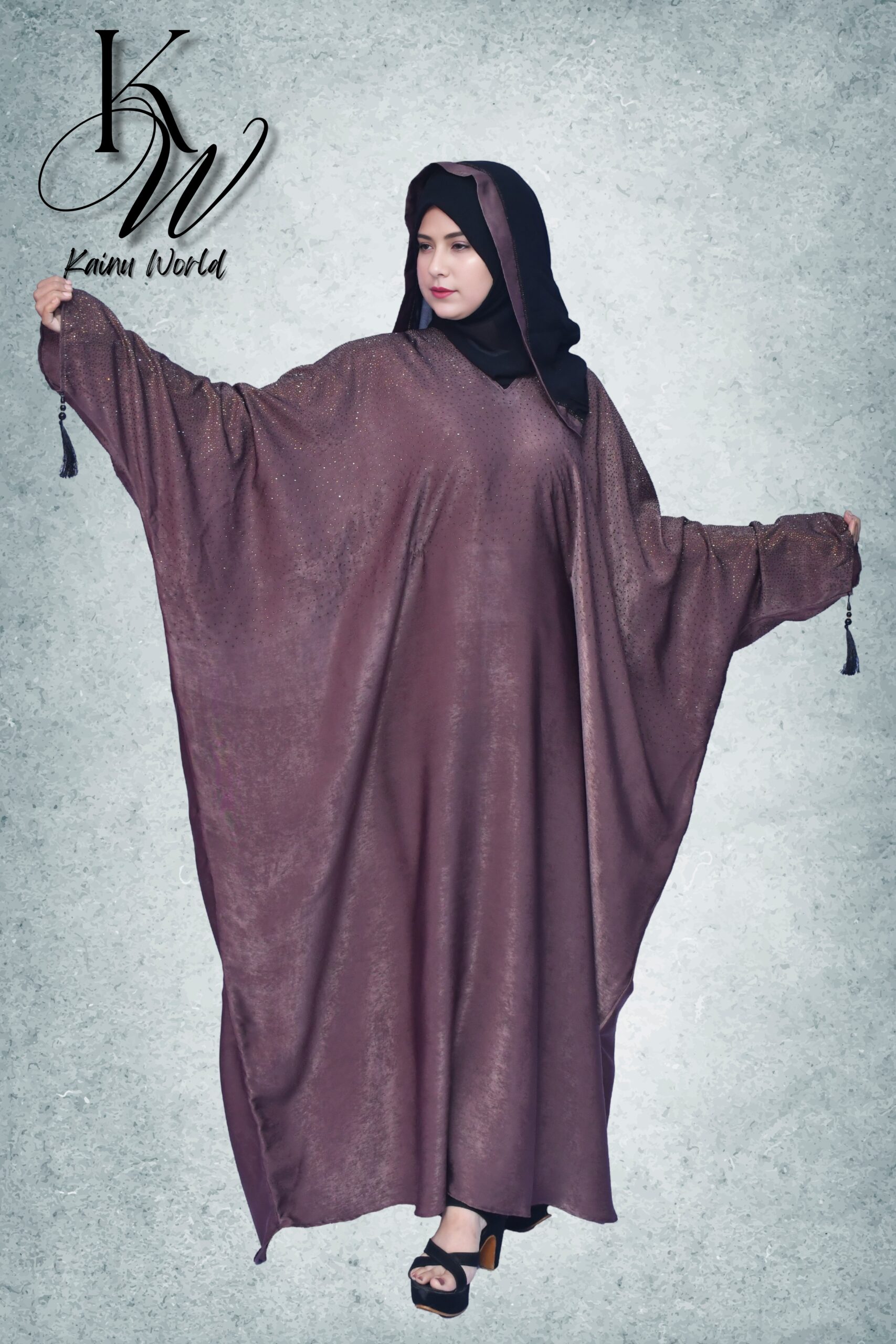 This is a kaftan abaya which has beautiful stone work design and latkans on sleeves .This Kaftan abaya is a decent article at the lowest price. It comes with a complementary Hijab that makes it more affordable. The beautiful piece has been crafted from premium velvet fabric which is very soft and breathable. One of the best abayas for any special occasion or for working ladies.